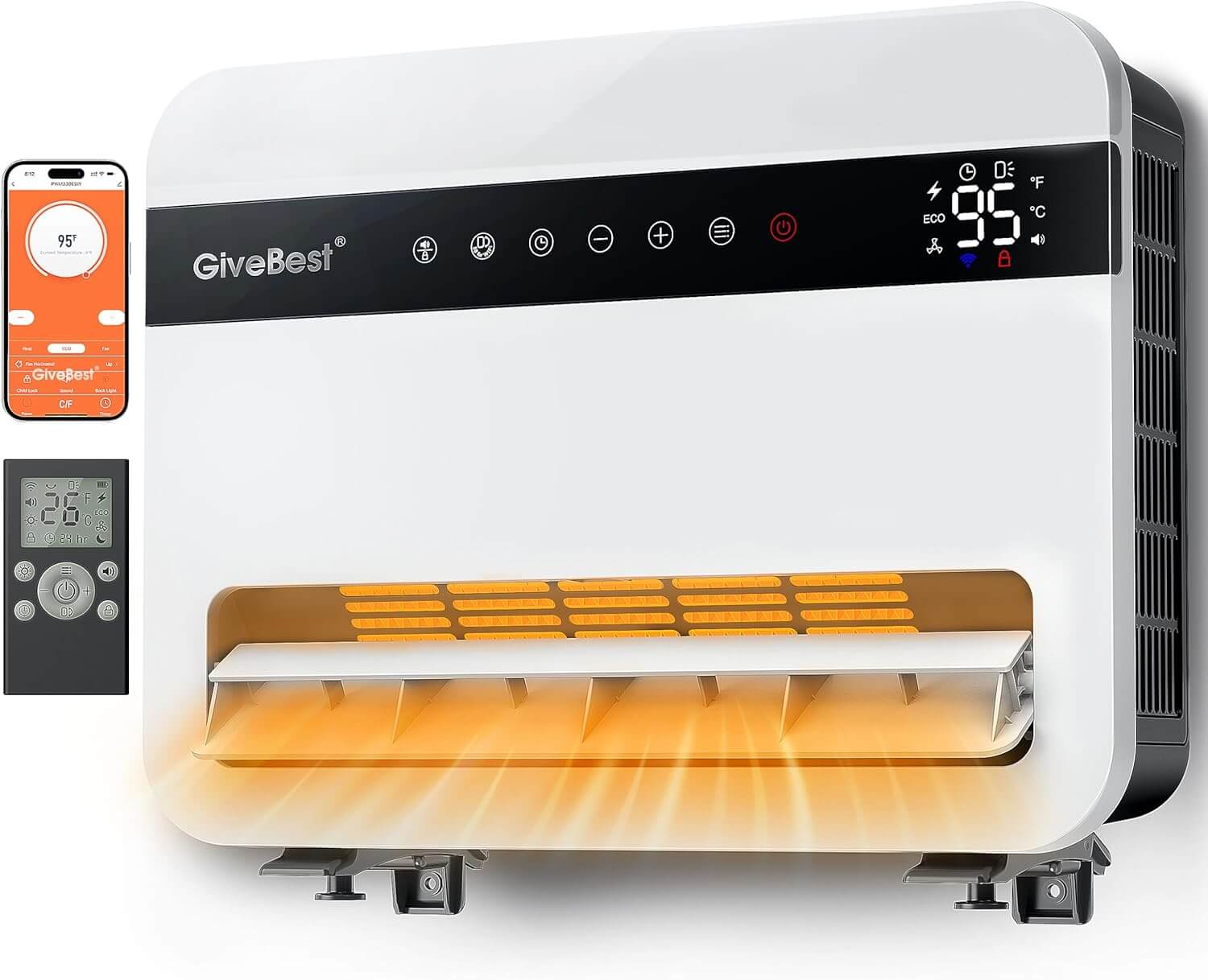 • Givebest 1500W Wall Electric Space Heater 120°Vertical Oscillation, Compatible with Alexa